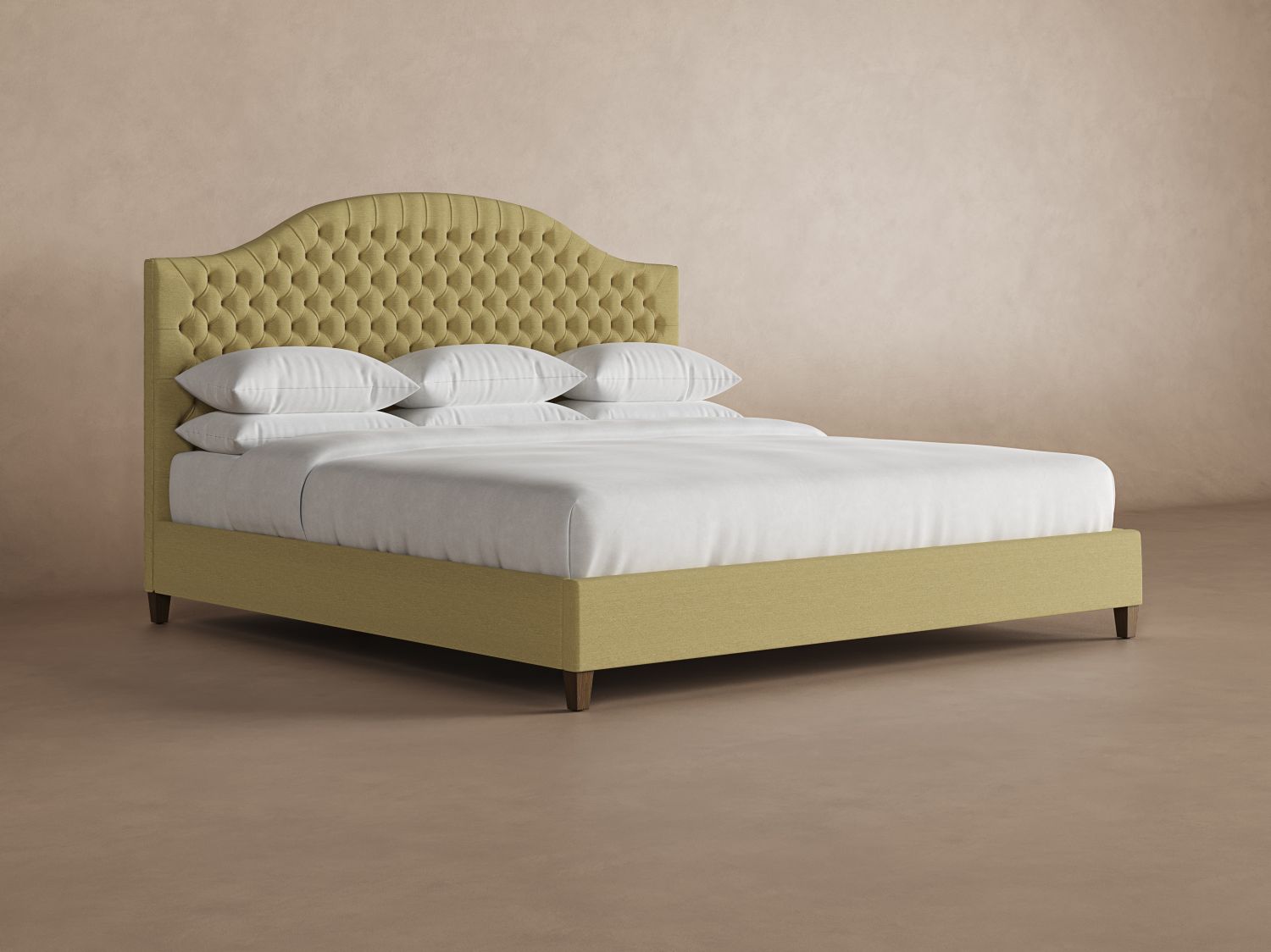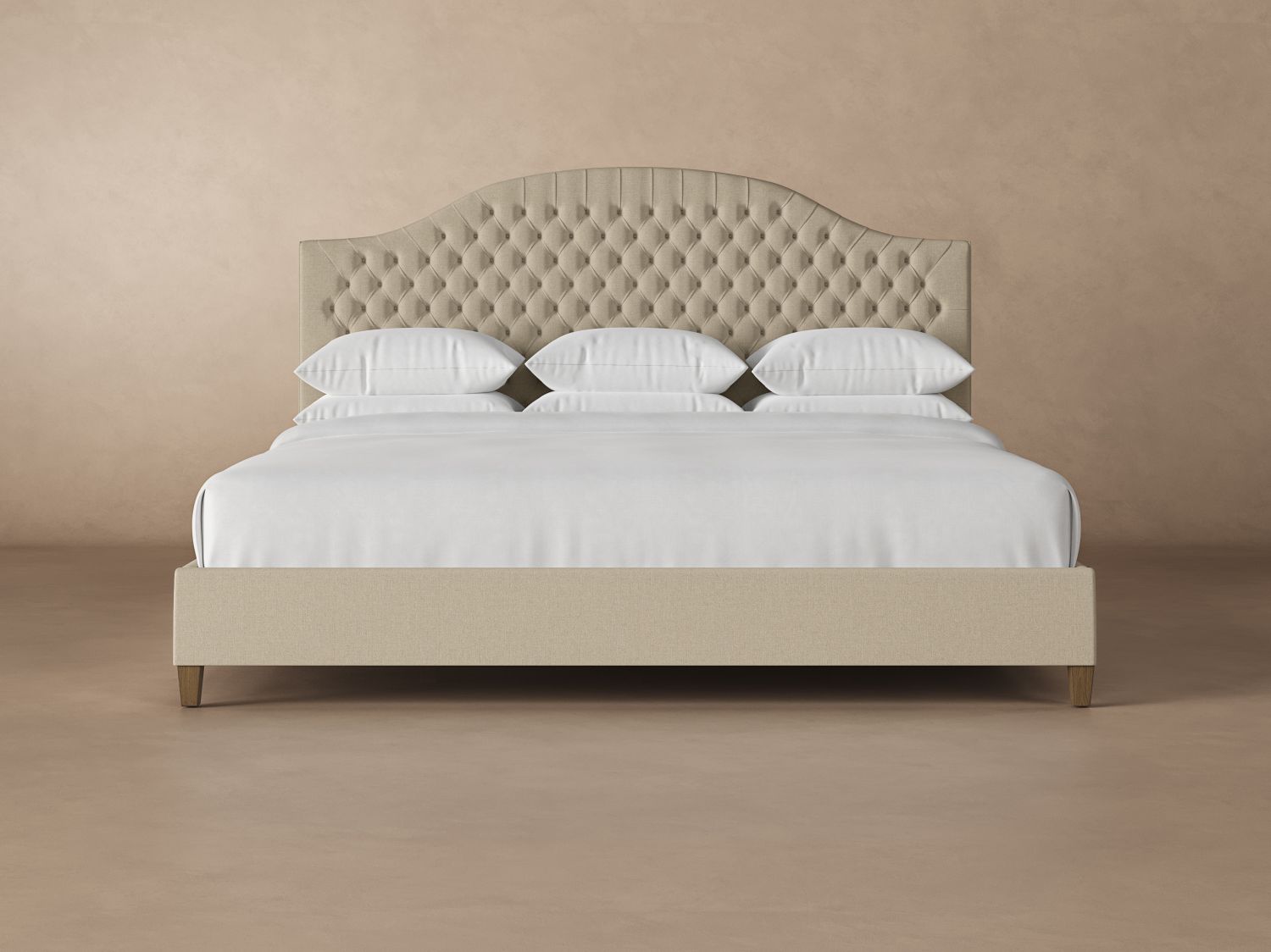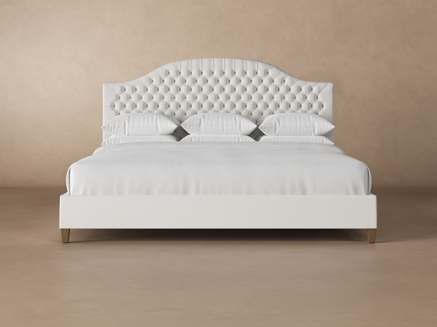 The Archie Deep Tufted Wyoming King bed frame offers a traditional design with an arched, diamond-tufted headboard. Each model is handcrafted to order, one by one, in our workshop in North Carolina. The base consists of poplar and maple hardwood, reinforced by dowels so that nothing pulls apart. That’s why our Archie bed frames offer incredible sturdiness and durability.